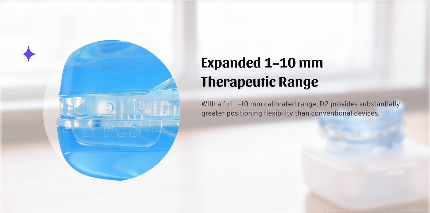 D2 features an expanded adjustment range and refined comfort architecture, allowing more precise positioning and improved airway support throughout the night.